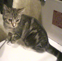 She, like her siblings, have been indoors since November 2013. We've treated them with natural medicine for immune boosting, digestion balancing and fed them raw chicken/pork/etc bought from Kroger/Jungle Jims. They get small amounts of canned Pet Pride/kibble as topping for their meal. Meaning they're getting as close to their natural diet as we can manage. But we use flea/worm meds that we get from the vet and also keep their teeth brushed every-so-often.